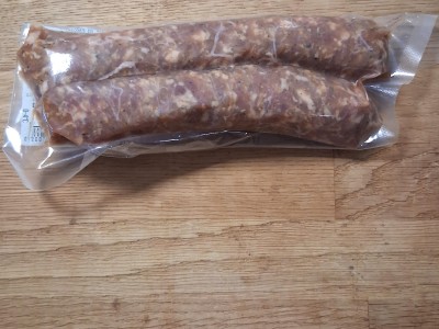Ingrédients : Viande de porc 88 % (France), eau, acidifiants : E326, E262, E331, Oignons 1,7%, Sel, Plantes aromatiques, Epices, Sirop de glucose, Arômes naturels, Arôme de fumée, Boyau naturel de porc.